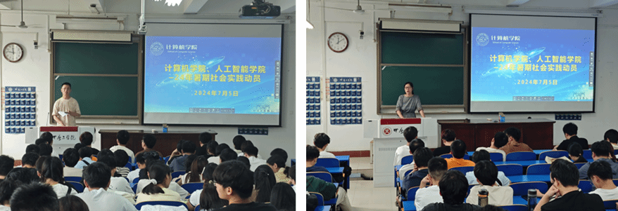 2024年暑期“三下乡”社会实践动员会在龙湖校区3号教学楼437举行,计算机学院党委副书记侯向花、团委副书记王腾和大一大二全体同学参加本次动员会。