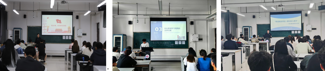 )组织各班级开展党团日活动、法治班会等法治教育活动,观看法治影片、组织制作法治海报,开展党团支部学习,聚焦防范校园暴力、防范校园欺凌、防范校园电信诈骗、国家安全、消防安全、道路交通安全、网络安全、心理健康等开展专题宣传教育,充分调动学生学法知法守法积极性。
