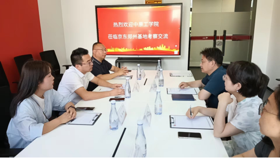 京东郑州数字经济产业园负责人耿光辉对学院一行到访表示热烈欢迎,带领参观了京东郑州数字经济展示中心,对京东郑州数字经济产业园的成立背景、发展历程、主营业务、人才需求等内容进行了详细介绍。