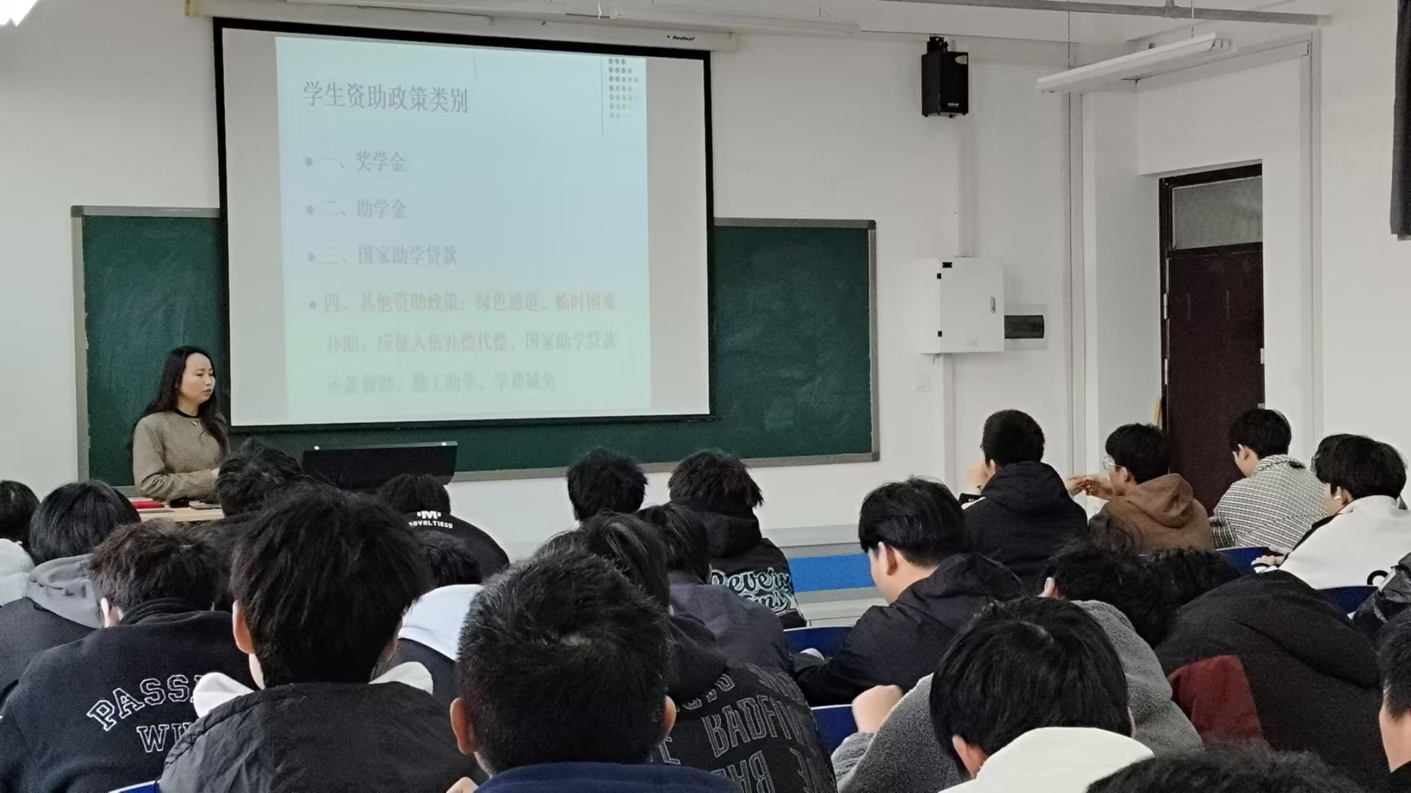 负责资助工作的冯丽轩老师对国家、学校资助政策进行了宣讲。她先是详细讲解了奖学金、国家助学金和国家助学贷款政策,重点介绍了奖学金申请评选的条件、助学金的评选办法及程序、国家助学贷款申请流程等,随后她又简略介绍了绿色通道、临时困难补助等其他资助政策,接着她又说明了家庭经济困难的认定的重要性。让同学们对于国家相关方针政策和具体的资助知识有了更为系统深刻的认识,提升了同学们学习的积极性,有利于培养浓厚的学习氛围。她叮嘱受国家助学金资助的同学合理使用助学金,提升责任感和使命感,鼓励家庭经济困难学生自立自强,有效利用学校资助政策,解决学习上、生活上存在的经济问题。