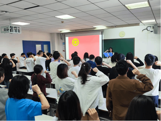 在庄严肃穆的氛围中,全体团员,高举右拳,重温入团誓词:“我志愿加入中国共产主义青年团,坚决拥护中国共产党的领导......为共产主义事业而奋斗!”铿锵有力的誓言在教室回荡,彰显了青年一代坚定不移的理想信念和使命担当。