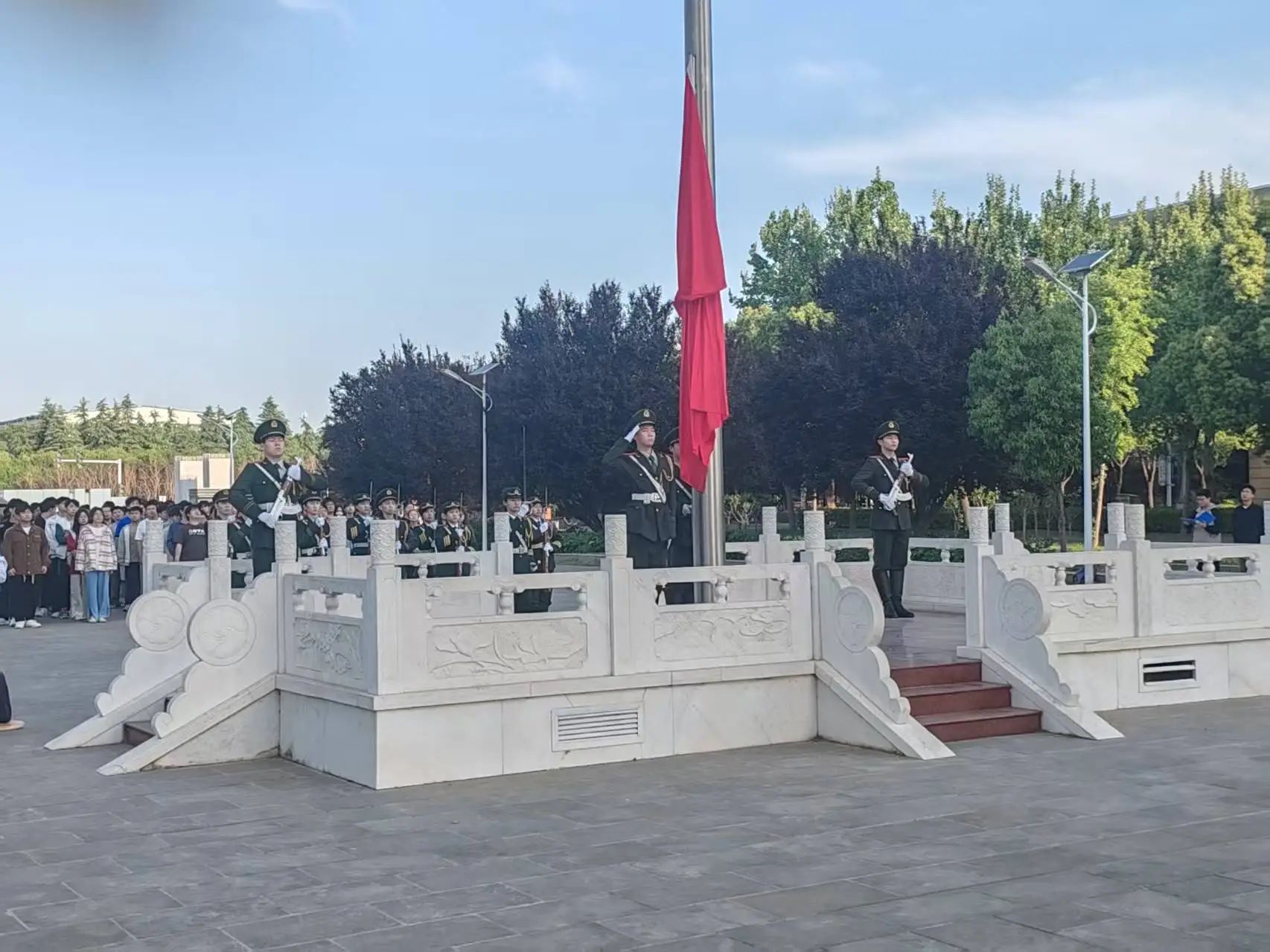 仪式最后,全体师生合影留念。在场学生纷纷表示,将以此次升旗仪式为起点,以爱国之心砥砺报国之行,以劳动精神夯实成才之基,争做有理想、敢担当、能吃苦、肯奋斗的新时代青年。