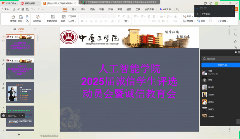 会议伊始,冯丽轩老师系统解读《关于开展“诚信学生”评选活动的通知》,从思想品德、履约表现、学业成绩、社会实践四个维度阐明评选标准,就本年度“诚信学生”的评选条件、评选办法、程序等进行了详细的说明,评选将通过“学生自荐-班级评议-学院复核”三级评审程序遴选择优。她特别强调:“诚信不仅是还款要求,更应成为伴随终身的品格烙印”。同时,结合实例对毕业生进行了诚信教育,希望同学们建立个人信用制度,诚实守约,努力工作,并按要求还款,树立个人的诚信形象。