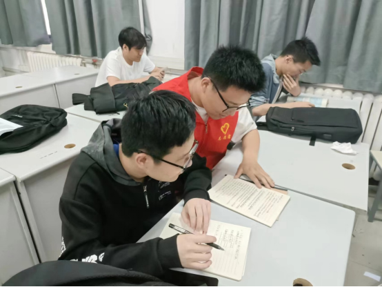姜茜老师对帮扶具体实施进行了安排:学院专门设置3号组团楼A915教室为学业帮扶晚自习专用教室,每周二、四晚在开展学习督促及一对一课业辅导,着重讲解了帮扶工作的开展,要求帮扶党员和被帮扶同学之间要相互尊重、积极沟通、共同商议帮扶操作方法与形式,切实保证帮扶交流时长,确保工作扎实推进,务求实效;支部将对帮扶过程进行跟踪了解,在学期末将会开展交流分享会,总结经验、完善方案。并向学困生发放帮扶记录表,内容包括学生基本资料、帮扶过程记录等。学困生同帮扶党员进行了一对一谈话交流。