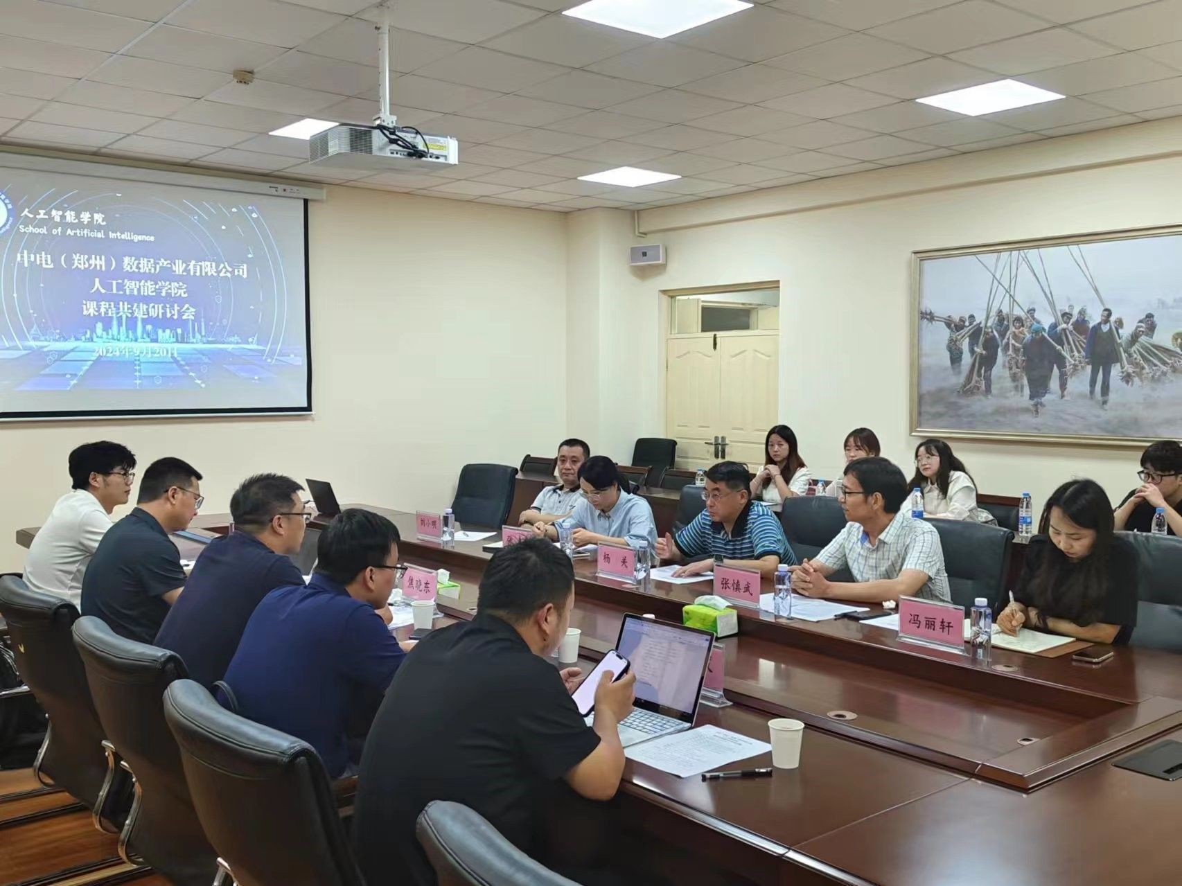 校企携手,在中原校区基础实验楼306会议室成功召开了课程共建交流研讨会。中电(郑州)数据产业有限公司副总经理焦晓东、解决方案总监秦利涛、方案专家许宁、崔振发、穆文斌、色色啦